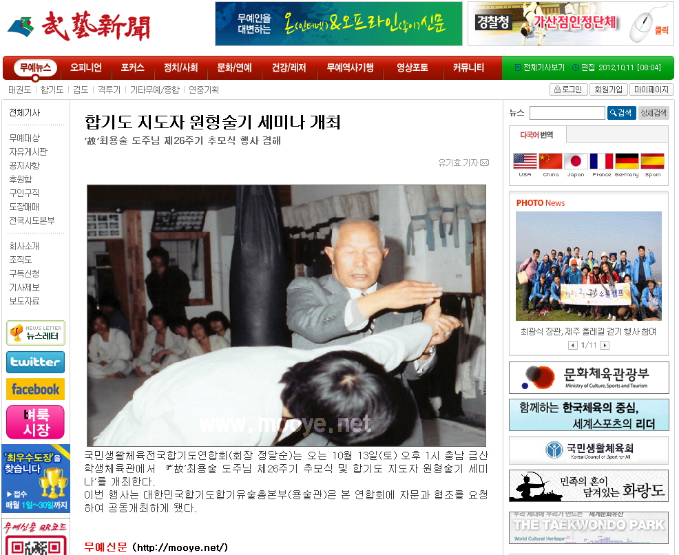 2012.10.26/'故'최용술 도주님 제26기 추모식 및 합기도지도자 원형술기 세미나